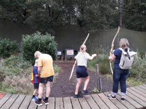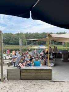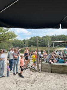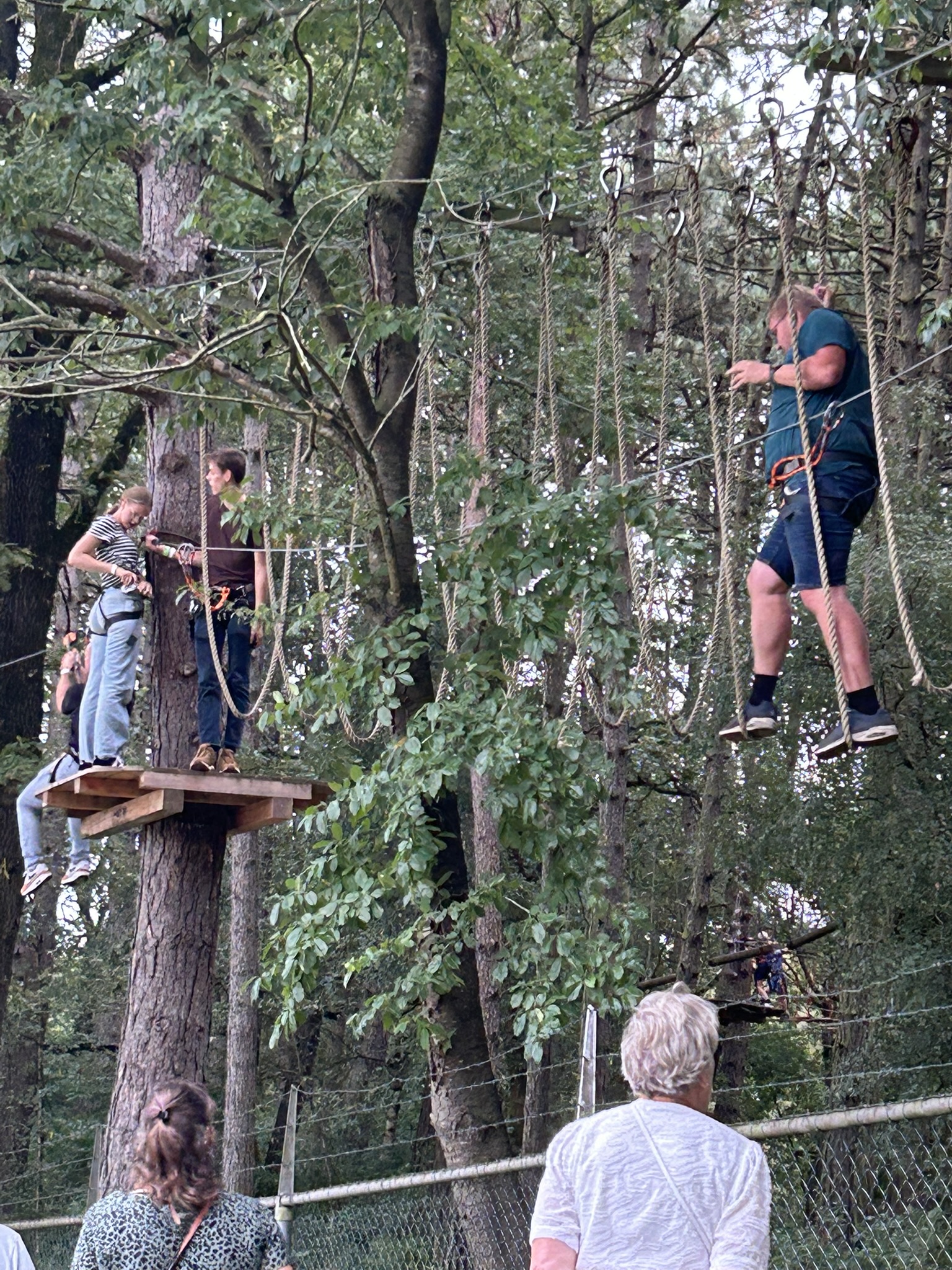 Na een warm ontvangst met koffie, thee en koek – en voor de kinderen een drankje en een muffin – kon iedereen zijn eigen avontuur kiezen. Sommigen trotseerden het klimpark (of het kleintjes-klimpark voor de jongere kinderen), anderen genoten van het belevingspark met onder meer boogschieten, mountainbiken of andere uitdagende activiteiten.