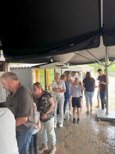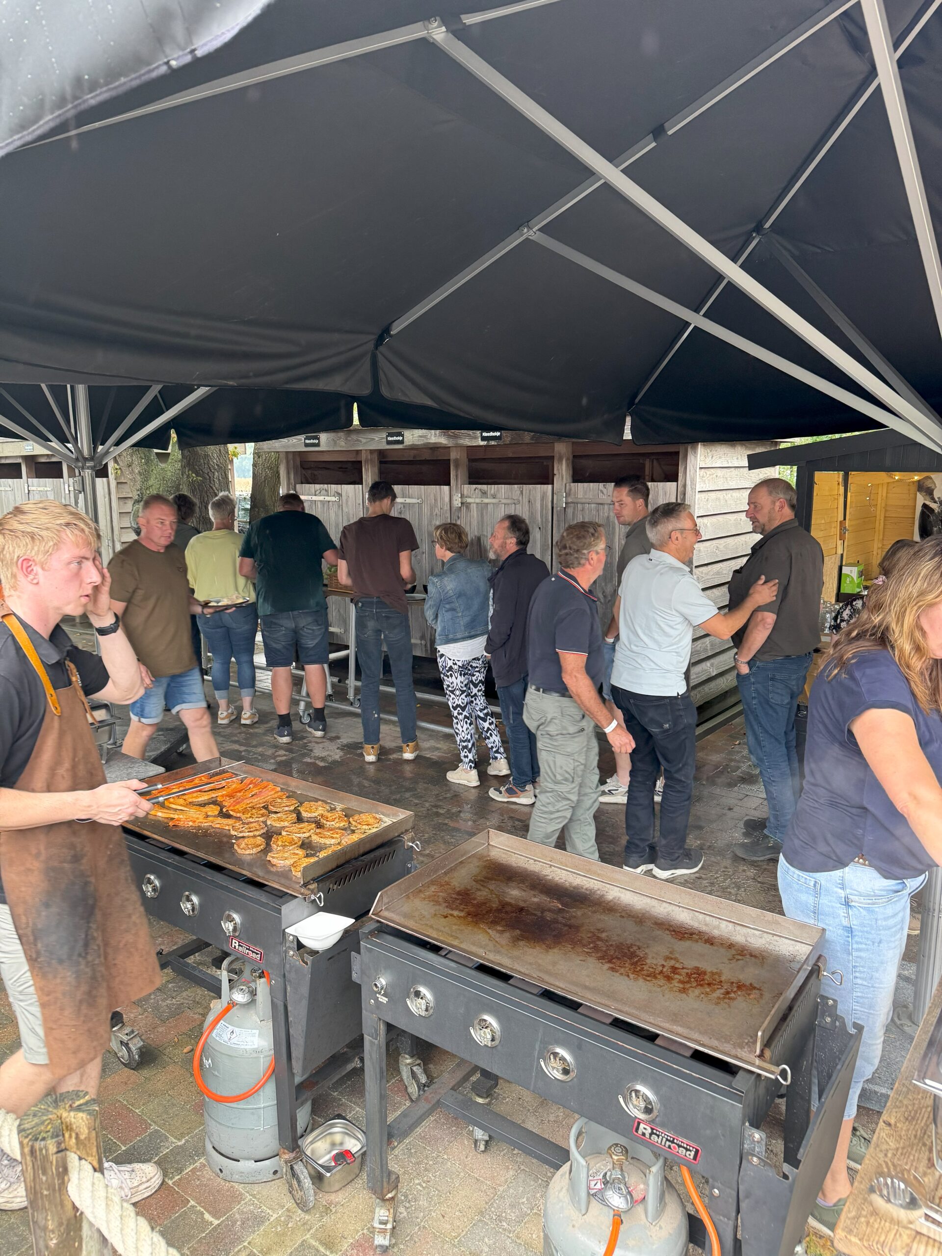 Hoewel we later op de middag getrakteerd werden op een flinke bui regen en onweer, lieten we ons niet uit het veld slaan. Samen schuilen onder de veranda zorgde juist voor extra saamhorigheid. We sloten deze bijzondere dag af met een heerlijke BBQ, waarbij volop werd nagepraat en gelachen.